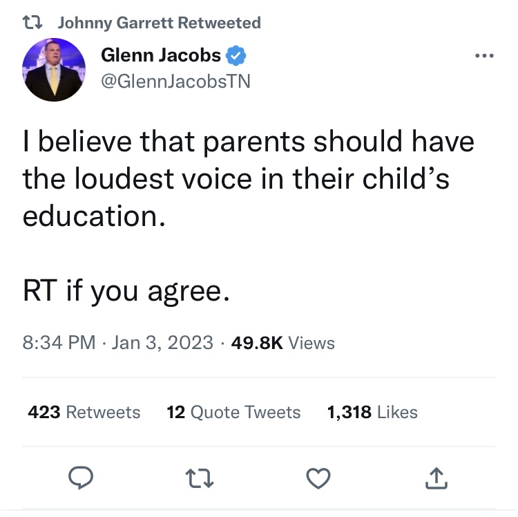 The optimal decisions for public school students are made as close to those students as possible. Parents and teachers are clearly the closest. Here in Tennessee, Capitol Hill and Andrew Johnson Tower—the places where laws and policies are enacted—are hundreds of miles away from many of the students impacted by these directives. What a shame.